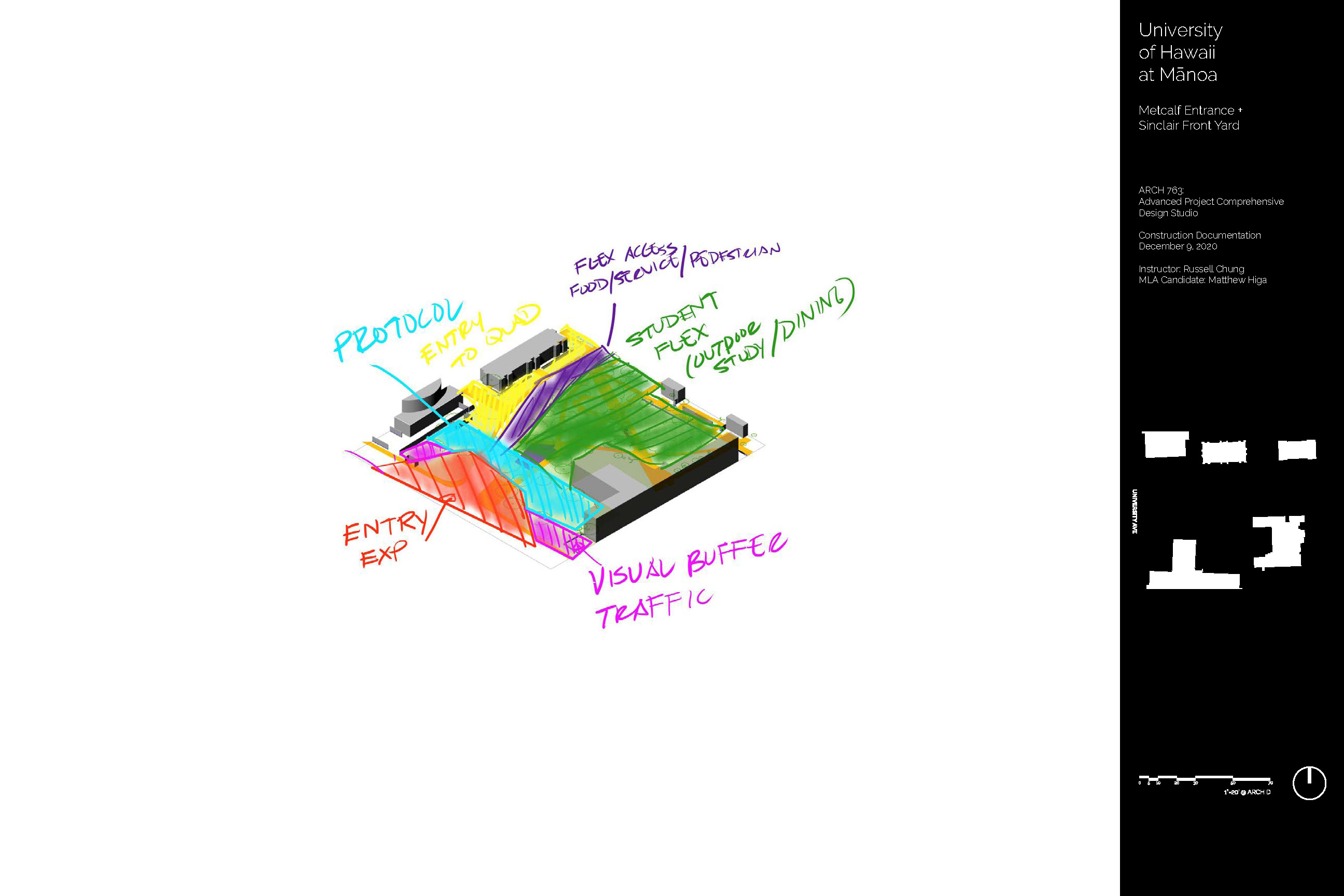 The Metcalf Entrance and Sinclair Library are slated to become a major placemaking feature that anchors the western edge of the upper Mānoa campus. The area will feature increased student housing and a new hub, the anticipated Sinclair Student Success Center.